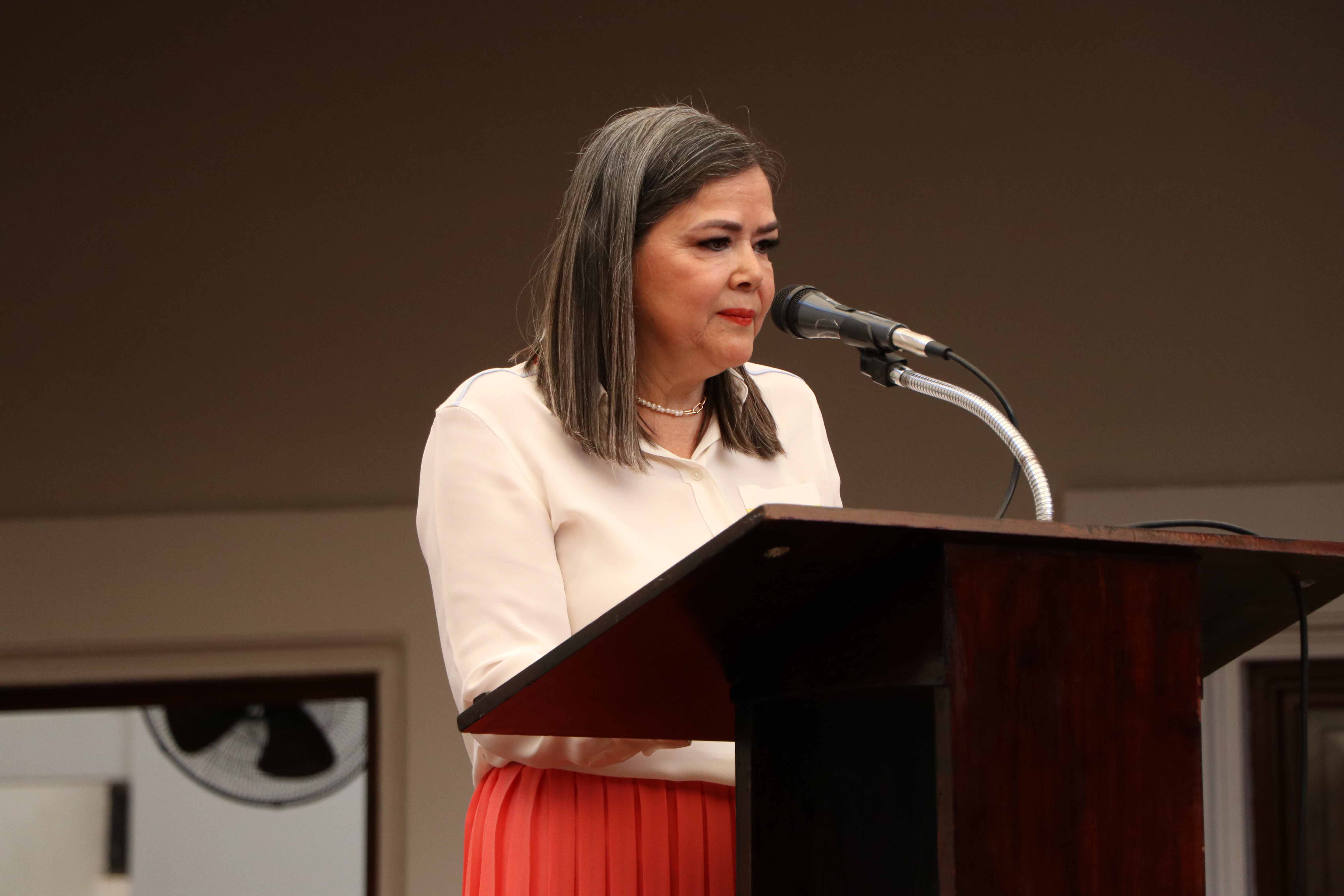 En representación del personal jubilado, la maestra Gloria Arteaga Vega dirigió un emotivo mensaje en el que destacó que concluir la etapa laboral y pasar a la jubilación es un sentimiento de felicidad y, a su vez, de nostalgia. Invitó a sus colegas jubilados a enfrentar y adaptarse a los cambios que tendrán en este nuevo estilo de vida para que gocen de esa libertad y se olviden de cualquier presión laboral, pues ahora son libres de hacer lo que quieran con sus 24 horas diarias. Antes de finalizar, destacó estar orgullosa de ser leona de corazón para siempre.